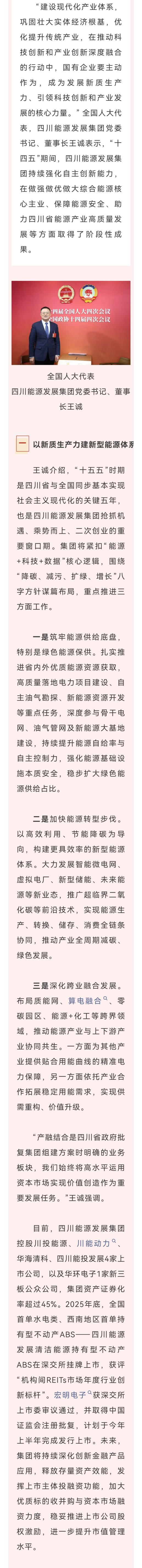 聚焦全国两会 | 全国人大代表,四川能源发展集团党委书记、董事长王...